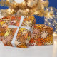 Modernt geometriskt utrustar, senapsgultt guld & presentpapper
