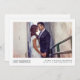 Våra stilrena och moderna bröllopskort är det perfekta sättet att låta vänner och familj veta om din elopement, hemliga ceremoni eller privata bröllop! En enkel vit ram omger ert favorit horisontella bröllopsfoto, med "just married" under i fet grå stil, och era namn, bröllopsdatum och bröllopsplats. Lägg till ett andra foto på baksidan med ett personligt meddelande - perfekt för att tacka vänner och familj, låta dem veta om er ceremoni, eller tillkännage en mottagning eller fest som kommer.