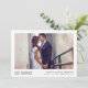 Våra stilrena och moderna bröllopsannonsering är det perfekta sättet att låta vänner och familj veta om din elopement, hemliga ceremoni eller privata bröllop! En enkel vit ram inramar ert favorit horisontella bröllopsfoto, med "just married" under i fet grå bokstav, och era namn, bröllopsdatum och bröllopsplats. Lägg till ett andra foto på baksidan med ett personligt meddelande - perfekt för att tacka vänner och familj, låta dem veta om er ceremoni, eller meddela en mottagning eller kommande fest.