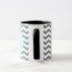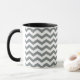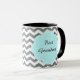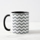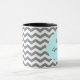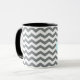 modernt, coola, elegant och klassiskt grått, vitt chevron zigzag rand, med vattenblå dekorativ form i mitten, bästa mormor-gåva mugg.