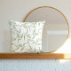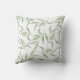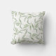 Vacker kastkudde med handmålad vattenfärg mönster med bleka gröna blad på en ren vit bakgrund.