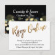 Observera att dessa kort kommer med kuvert, men det finns möjlighet att beställa korten utan kuvert till reducerat pris. Var noga med att kryssa i detta alternativ om du föredrar det. // När du planerar din speciella dag har du valt att be dina gäster svara online istället för att skicka ett kort med posten. Denna bunt med festliga infogningskort har utformats för att tjäna flera syften: för att ge dina gäster din online-RSVP-adress, samtidigt som den andra sidan ger en Save the Date-påminnelse. Typografiöverlägget, en textbaserad grafik som läser "RSVP Online", skapades med en modern, avslappnad, handskriven script-font, förstärkt med en falsk guldfolieeffekt. Baksidan täcktes med en svart grafik med gnistrande suddiga bokeh-ljusblixtar i blå och varma guldnyanser. V