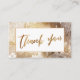 Oavsett om du använder detta kort som en etikett till bröllopsgåvor eller ersätter namn- och datumfälten med ett personligt meddelande, kommer dess roliga och moderna design säkert att ge komplimanger från mottagarna. Den enfärgade bakgrunden är täckt med en falsk guld folie marmorerad effekt delvis maskerad med ett emblem med guldkanter som framhäver innehållet. Med hjälp av en modern grafisk överlagring med borstad handskrift som säger " tack " är ditt viktiga meddelande om tacksamhet i centrum och omöjligt att missa. Uppdatera baksidan som du önskar. // 100 //