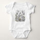 Modern handmålad bodysuit för bebisar med vilda blommor och fåglar