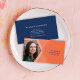 Den moderna visitkorten som presenterar en orange, varvade geometrisk design på bekläda var du kan också tillfoga ditt foto och en blått färgar baken. Denna visitkort är ideal för den lika inre formgivare för olika yrken, händelseplanneren, fastighetsmäklare, konsulenten, makeupkonstnär, modellerar, skådespelareEtc.-kontrollen ut andra visitkortar här: https://www.zazzle.com/rosewoodandcitrus/gifts?cg=196997542081207163&rf=238364477188679314