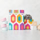 Ett stam- ikatmönster i en regnbåge av färger - rosor, orange, gult, grönt, blått och lilor. Färgerna inspireras av ett mönster för grannysmedvirkning, det har lite en retro vibe. Denna moderna stilsjal är underbar för en variation av tillfällen liksom en födelsedag. Det är också den underbara för barn, tonåringar och vuxen.