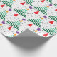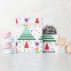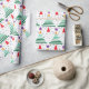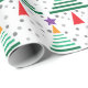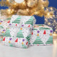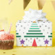 Julgåva som slår in papper med ett modernt julgranmönster. Modmönster med den gröna julgranillustrationen, purpurfärgade stjärnor och grå snö tillfogar ett festligt handlag till dina julgåvor.