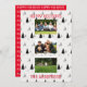 Denna moderna helgdesign är redo att anpassas. Den har tre bilder ovanpå ett julgransmönster i svart och vitt. Ett perfekt utrymme för att dela dina favoritminnen. Det röda och vita meddelandet på baksidan av kortet ger en extra festlig touch. Både texten högst upp och längst ned är lätta att ändra för att passa dina behov.