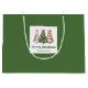 Minimalistisk vattenfärg julgran presentpåse med lekfullt leopardmönster i jordnära grönt och guld. Personifiera med ditt eget namn för en stilfull julpresentpresentation.