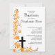 Vår stilrena korsblommiga dopinbjudan ger ett modernt och roligt första intryck på din babys speciella dopdag. Vår orange och vita inbjudan har en vacker, stilren orange blommig ram på en krispig vit bakgrund. Baksidan av vår inbjudan har en matchande färg för en extra speciell touch. Modern rolig design som säkert kommer att imponera på dina gäster. Perfekt inbjudan för en första kommunion, dop eller konfirmationsfest. Besök vår butik för ytterligare färgval för en flickas dop, en pojkes dop. ©Mujka