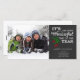 Den stilfulla & moderna svart svart tavlan "är det den mest underbara tiden för helgdagjul av för året" kortet för fotoet med en grön gräsgren och röda bär.