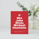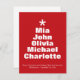 Julgran röd och vit anpassningsbar namn söt, modernt hälsningskort anpassar den med din egen familj namn
