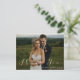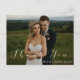 Vacker modern och elegant vit " tack " manus överlägg bröllopsfoto tack-kort. Innehåller fram- och baksidans foton.