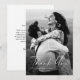 Manus fotobryllop elegant stilrent modernt tackkort. En del av en bröllopssamling. Färgerna kan ändras. Baksidan innehåller ett tackmeddelande som du kan anpassa för varje gäst eller ta bort om du hellre vill skriva ditt tack för hand. Klicka på redigeringsknappen för att anpassa.