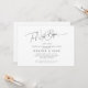 Designen har ett klassiskt kalligrafiskt manus som tillkännager Kvällen före repetitionsmiddagen. Anpassa enkelt viktiga detaljer samt monograminitialer på baksidan av kortet.