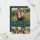 Modernt manus trendigt tre foto grönt spara datumet