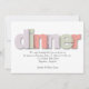 Denna enkla moderna middagpartyinbjudan gör mest av typografi. Ordmiddagen skrivs ut upptill i stora brev i en modern pastellfärgad färgintrig - lavendellilor, mintgrönt och melonrosor. På de två breven N - det finns skissar av en knivar och dela sig. Din beställnings- text går nedanför i svart. Alla inslag skrivs ut på våra högkvalitativa produkter, dem inkluderar inte några verkliga för juvlar, för utföra i relief eller annan textilinslag för guld. Alla designer är tar copyrightt på noterbara uttryck, Inc. All reserverad rättigheter.