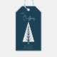 modernt, minimalistiskt blåfoto julgran presentetikett