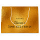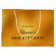 En presentväska för en 50:e (eller någon annan ålder) födelsedag. En faux guld metallisk tittar bakgrund. Anpassa och lägg till ett datum, namn och år 50. Namn är skrivet i svart med ett modernt handskript i stil.