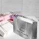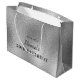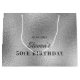 En presentväska för en 50:e (eller någon annan ålder) födelsedag. En faux silver metallisk tittar bakgrund. Anpassa och lägg till ett datum, namn och år 50. Namn är skrivet i svart med ett modernt handskript i stil.