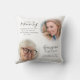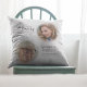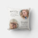 Skapa din egen dubbelsidiga minneskudde som en tröstegåva, med 2 bilder av din älskade (från olika perioder i deras liv), en malltext som lyder "I kärleksfullt minne, din närvaro vi saknar, ditt minne vi värnar, älskar dig alltid, glömmer dig aldrig", deras namn, datum och ett personligt meddelande. Textens stil, storlek och färg kan ändras genom att klicka på länken "Anpassa ytterligare" efter att du har anpassat den.