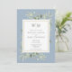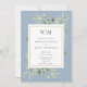 Med känsliga vattenfärg gröna blad på en dammig blå bakgrund, kan denna eleganta botaniska bröllopsinbjudan anpassas med era monogram initialer och speciella bröllopsinformation och ert speciella foto på baksidan. Designad av Thisisnotme