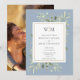 Modernt Monogram Dusty Blue Grönska Foto Bröllop Inbjudningar
