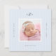 Dela med dig av dina nyheter med detta moderna men tidlösa födelsekort. Med ett rent monogram och en delikat randig bakgrund låter detta minimalistiska kort ditt nyföddas foto ta centerrollen. Den mångsidiga baksidan har plats för flera bilder och ett sött meddelande, vilket gör det perfekt att använda både som födelsekort och tackkort för baby shower. Finns i flera färger för att passa din lilla enas stil.