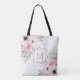 Modernt monogram rosa vattenfärg blommig tygkasse