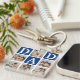 Skapa din alldeles egna DAD-nyckelring med denna moderna fotokollage med flera bilder och text. Designen har 6 fotografier med fyrkanter med rundade hörn och texten DAD i mörkblåa block som kan ändras till valfri färg. På baksidan finns texten 'Världens bästa pappa' med en söt faderscitat som kan behållas eller anpassas för att göra den personlig för dig! och ett litet hjärta med barnens namn. FOTOTIPS: Beskär och centrera dina bilder innan du laddar upp för bästa resultat.