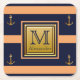 Modernt nautiskt ankare Blått Orange Guld Monogram Underlägg Papper Kvadrat