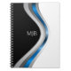 En snygg modern anteckningsbokdesign för hemmet, skolan eller företaget, denna anteckningsbok har metalliska kurvor i blått, silver och grått i ett kurvat mönster med svart och vit bakgrund. Anpassa exempelttexten med ditt monogram, namn, företagslogotyp eller annan önskad text.