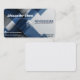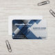 En snygg, professionell mall för visitkort med en dynamisk komposition av lagerdiagonaler i marinblått och borstat silver på en ren vit bakgrund.