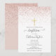Med elegant rosa guldglitter och en enkel guldkors, kan denna snygga dopinbjudan anpassas med din speciella evenemangsinfo. Designad av Thisisnotme