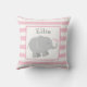 Denna söta barnkudde visar en grå elefant med rosa hjärtaccent på en vit bakgrund, infattad i rosa och vita ränder. Barnets personliga namnmonogram visas framträdande ovanför elefanten. En söt avslutande detalj för en babyflickas barnkammare, sovrum eller lekrum. Anpassa namnet för en genomtänkt, personlig gåva.