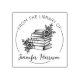 Denna "Från bibliotek av" gummistämpel har en bok, blommor och ett anpassat namn.