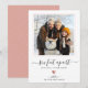 Sex meter ifrån men fortfarande i våra hjärtan: Detta moderna julkort är perfekt för den här ofullkomliga högtidsperioden. Elegant, modern text som lyder "6ft ifrån men fortfarande i våra hjärtan" över ett chic tryckt roséguld hjärta och ditt eget personliga meddelande med namn bredvid ett sött inramat familjefoto. Baksidan har ett sött prickmönster i rosafärgat.