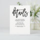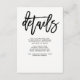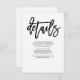 Det här moderna, svart-vita informationskortet för bröllopsgäster har en trendig, kalligrafisk typografi och en enkel och stilren layout. Du kan använda dessa kort för att inkludera information om din bröllopsmottagning, köranvisningar, boende och allt annat du vill att dina gäster ska veta.