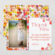 Söt modern födelsedags tackkort för att tacka din familj och vänner. Färgglada tackkort för barn - flicka och pojke. Kortet har färgglada akvarellfläckar. Anpassa kortet med ditt foto och namn. Du kan också ändra tackmeddelandet och skriva ditt eget. Texten är i trendig och modern vit färg. Bakgrunden är vit.