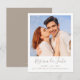 Meddela att ni ska gifta er med dessa moderna "save the date"-inbjudningar med texten "Save Our Date" i ett stilrent handskrivet typsnitt som ger en personlig touch. Perfekta för att visa ert favoritfoto av paret i en horisontell layout med full bleed, innehåller denna strandinspirerade bröllopsbrevpapper en mjuk, sandfärgad beige text som visar era namn, bröllopsdatum och plats. Baksidan på korten har en komplementerande enfärgad tanfärg som ger elegans till alla bröllopsteman. Finns även i en spansk översättning för en personlig touch. Besök DoTellABelle på Zazzle för att utforska hela den matchande bröllopsinbjudanpaketet.