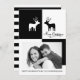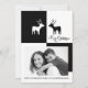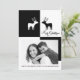 Formulera "god jul" i svart cursive skrivar stilsorten, är gullig hjort i svartvit och ditt familjfoto inslagen av denna elegant, och semestrar den negativa utrymmejulen för modern realitet fotokortet. Baksidaen täckas med ett mönster av svartvita randar.
