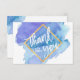 Älskvärda moderna vattenfärgTACKkort med främre text. Blått kricka, turkos, lila, violett blandning av färger. Skriva brev. Fauxguld omkullkastar ramen. DRA TILLBAKA AV KORT är tomt och alternativ att tillfoga ditt handskrivna meddelande. Perfekt för något tillfälle liksom bröllop, baby shower, studenten, födelsedag, christening/dop….,