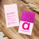 En djärv, högintensiv design med livfullt varmgrat glitter i kombination med en ren, modern layout. Den mjuka centrala panelen håller dina detaljer tydliga och lätta att läsa medan den gnistrande kanten tillför en oförbehållsam glamourenergi. Perfekt för skönhetsexperter, kreativa eller någon som vill att deras varumärke ska kännas självklart, feminint och omöjligt att ignorera.