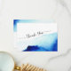 En lättanpassad tacksamhetskortdesign med unik vattenfärg indigo-blå bakgrund och ett stort "Tack" i ett elegant manus, perfekt för ett stilrent modernt bröllop eller någon annan tillställning.