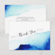 En lätt-anpassningsbar tacksamhetskortdesign med en unik vattenfärg indigo blå bakgrund och ett stort "Tack" i ett elegant manus, perfekt för ett stilrent modernt bröllop eller någon annan tillställning.