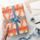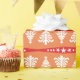 Ett gulligt, stilfullt och elegantt vitjulgranmönster på en orange bakgrund. Röda randar med vitstjärnor tillfogar ett unikt handlag till den festliga designen med ett modernt grafiskt julgranmönster.