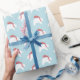 Modern och minimalistisk julomslutning med papper polar bär rödstrimlade halsdukar. Kommer i en kontinuerlig rulle. Perfekt för jul/julhelg. På en ljusblå bakgrund med fler alternativ för färg tillgängliga i studio. Även i blandade mönster lakan-satser.