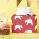 Modern och minimalistisk julomslutning med papper polar bär blå, stripade scarfar. Kommer i en kontinuerlig rulle. Perfekt för jul/julhelg. På en klassisk röd bakgrund med fler alternativ för färg tillgängliga i studio. Även i blandade mönster lakan-satser.