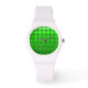 Mod Pop Dots i övertoningscirkeltoner från kalk till Kelly Grönt, på en vit sportklocka.