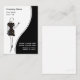 Modevisitkortar med den chic modedamen som ha på sig en damastast klänning- och textorientering som du kan skräddarsy på en rosa vit- och svartbakgrund. Stilfull visitkort som är särskiljande och ny. Bäst visitkortar för teman förband till modeboutiquen, att modellera, skönhet eller använder denna för en hår- eller nagelsalong.